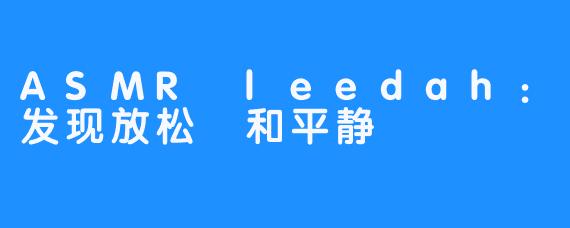 ASMR leedah是一家ASMR(自律神经兴奋缓解)制作团队,其研究和演示被广泛地用于放松心情、减轻压力、舒缓紧张和改善睡眠质量。他们专注于带给客户更多放松体验,以及让客户经历非常平静的情感。
